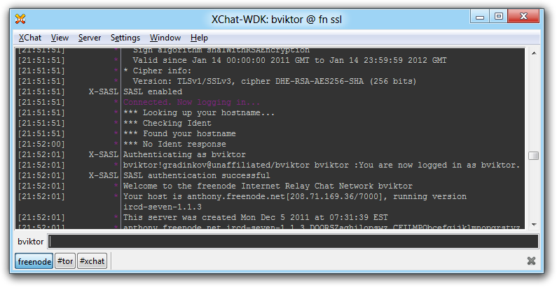 X-SASL provides SASL support for XChat. It is based on the cap_sasl plugin. You can set your username and password for a given network with: /XSASL ADD username password networknameWhere the password is in plain text format and networkname is the name specified in the Network List. It should apply the next time you connect to the specified network. ![]() /HELP XSASLfor more info. The source code is available in the repo. |