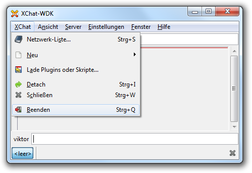 You can start XChat-WDK in whichever language you want (for which L10n exists). You can use the regional settings of Windows, or set the LC_ALL user environmental variable. The value of the variable must be the two letter country code for your country. If in doubt, have a look at the share\locale folder. You have to restart XChat-WDK for the changes to apply. ![]() @echo offset LC_ALL=enxchat.exeThis sets the language to English. You may use fr for French, de for German, etc. Save the code above as run.bat, and copy it to the XChat-WDK install folder. You can then start XChat-WDK in the desired language by running the batch file. |